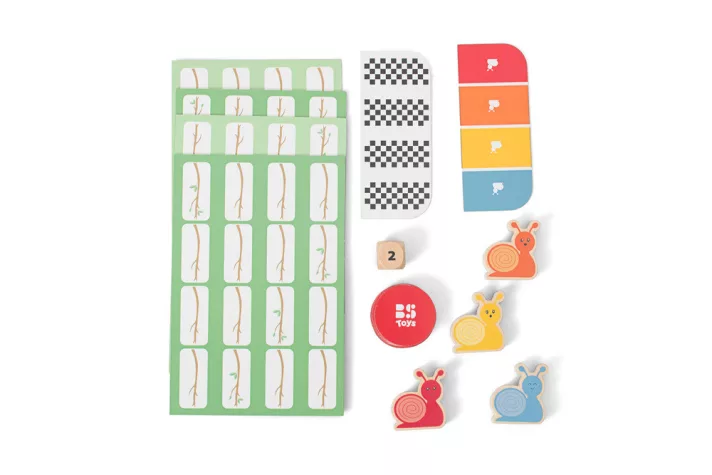 A BS Toys – Csigaverseny egy színes és izgalmas családi társasjáték, amelyben a csigák versenyt futnak a levelek között, hogy elsőként érjenek célba.