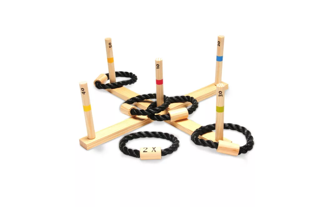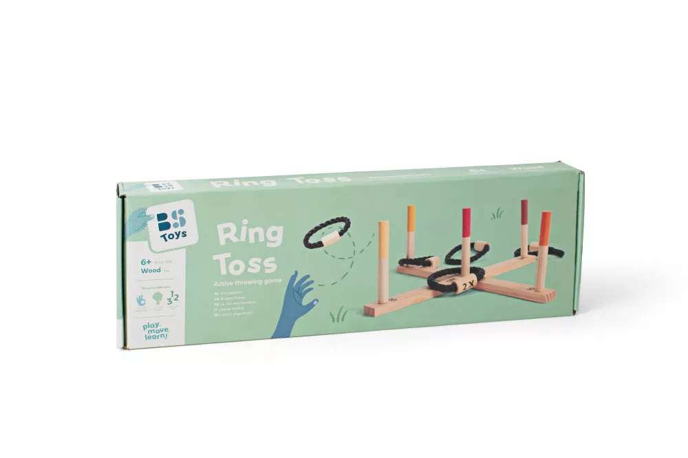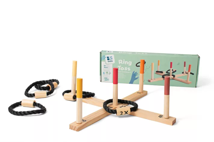 Ez a karikadobáló ügyességi játék fából egy igazi klasszikus játék, amely szórakoztatva fejleszti a kéz-szem koordinációt és a koncentrációt.